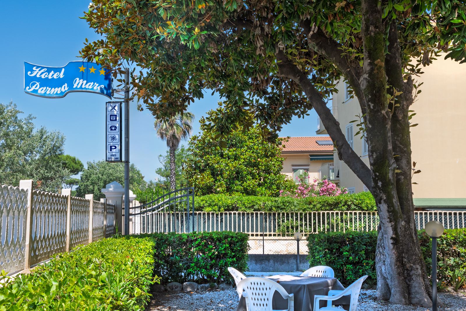 L'hotel, a 100 metri dal centro Marina di Massa, è un'oasi di tranquillità: immerso nel verde di un immenso giardino (2.000 mq) nel quale si alternano una zona "solarium" con lettini e ombrelloni, ed una zona "relax" con tavoli e sedie all'ombra di pini, magnolie e palme secolari. Una parte del giardino è adibita a parco giochi, e quindi riservata ai bambini. Sul retro dello stabile si trova un ampio parcheggio interno con chiusura notturna.