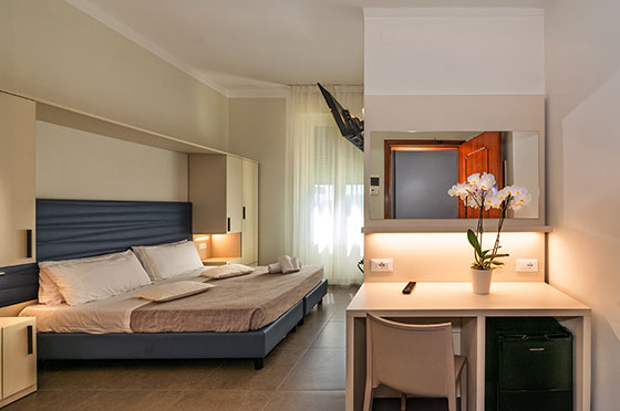 Die Zimmer sind geräumig, hell und mit allen Komfort die ein modernes Hotel bieten kann. Sie sind mit Telefon mit Möglichkeit für Internetanschluß, Farbfernseher, TV-SAT, Klimaanlage und Schließfach ausgestattet.